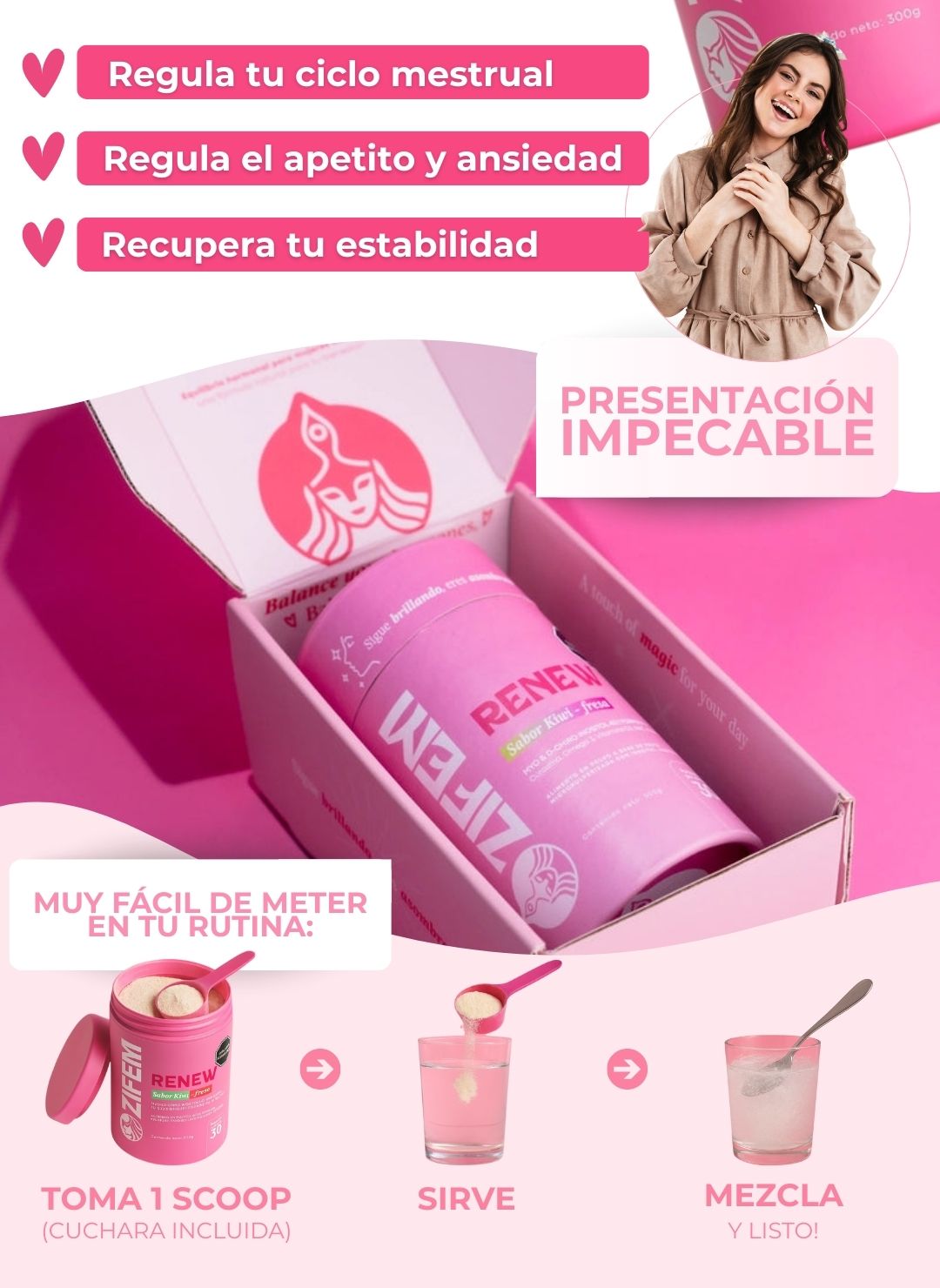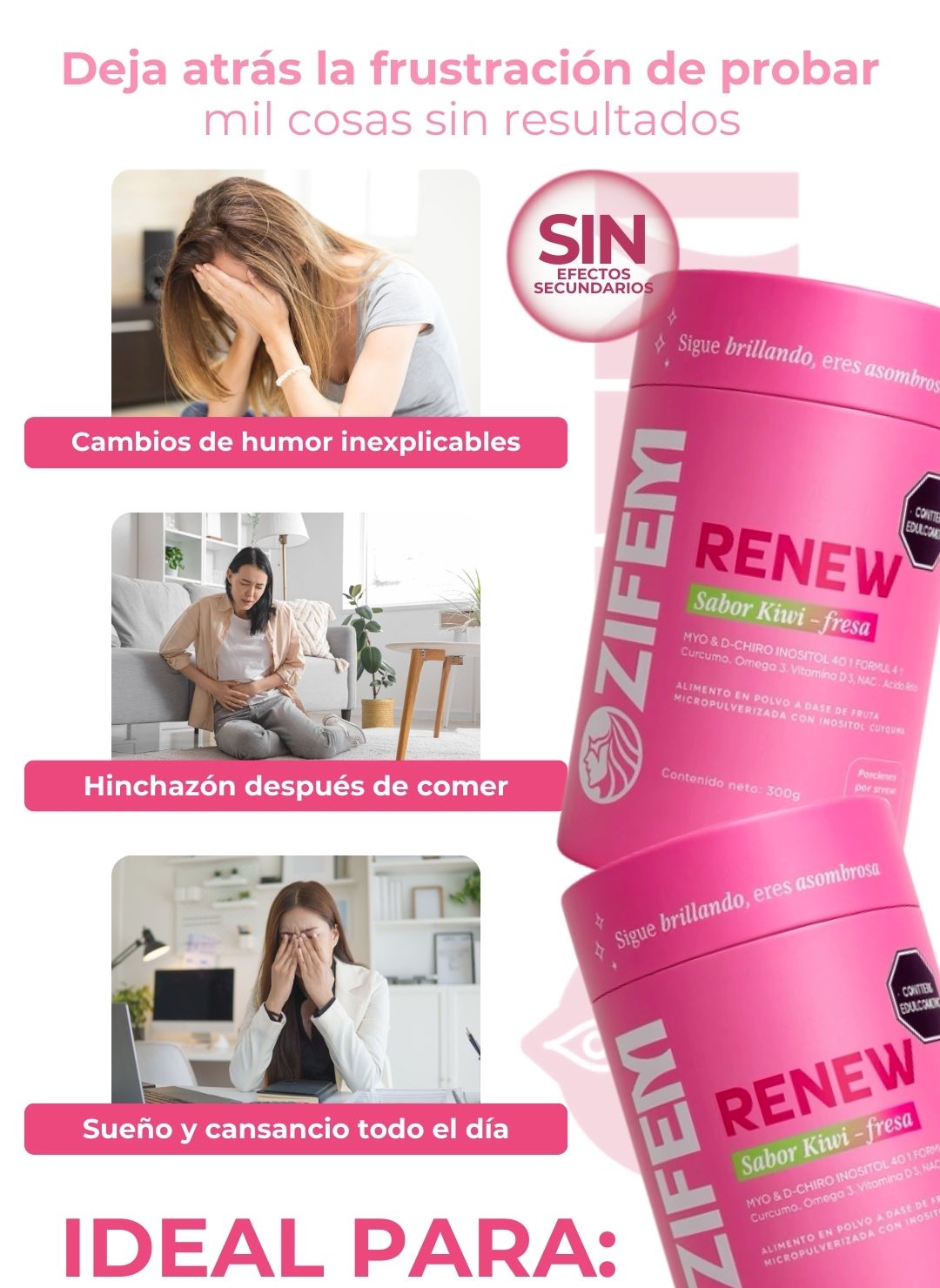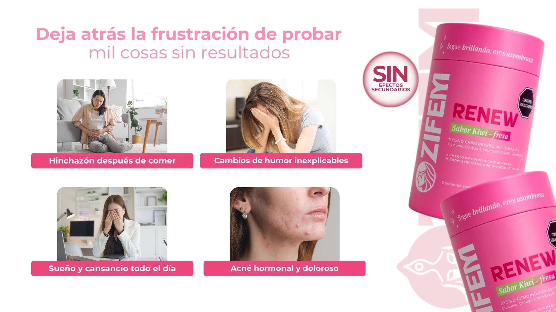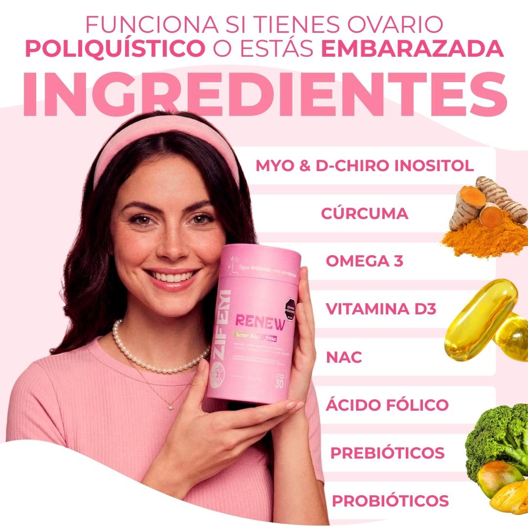 Sí. Renew fue formulado con ingredientes clínicamente respaldados como Myo-inositol, D-Chiro, Vitex y NAC, que apoyan la ovulación natural, la sensibilidad a la insulina y la estabilidad del ciclo. Es una opción segura para mujeres con SOP que buscan mejorar sus síntomas de forma natural.